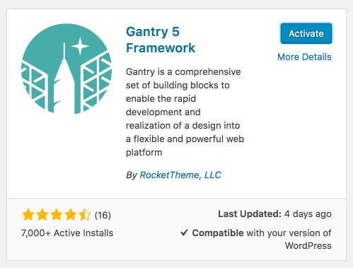 - Gantry 5: Esto contiene el framework Gantry 5 y sus partes asociadas (biblioteca, componente y plugins).