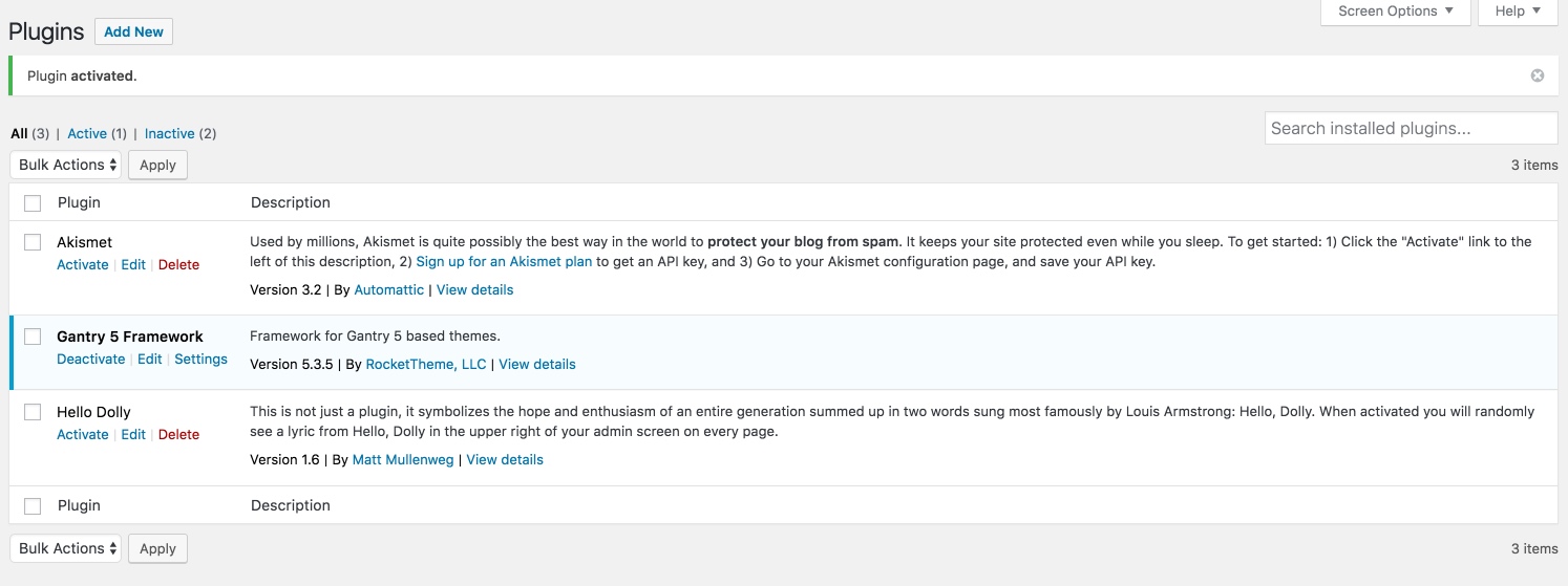 El proceso de instalación es exactamente el mismo para cada uno de estos. La única diferencia es el archivo que estás instalando. El componente Gantry 5 debe instalarse antes que un tema Gantry.